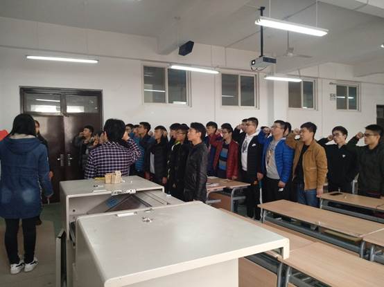 2018年11月30日中午12:10,足球赌注网站员工第一党支部党员转正与宣誓大会在工二504如期举行。参加本次会议的党员共33名,其中正式党员19名,预备党员14名。大会由党支部书记张晖老师主持。