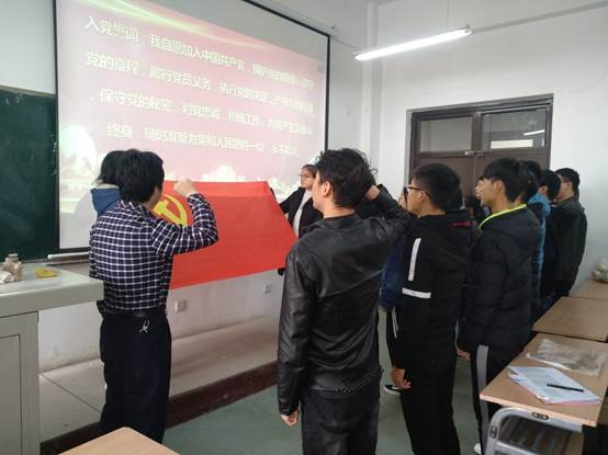 大会第二项: 在庄严肃穆的气氛下,支部书记张晖老师领誓,13名预备党员进行入党宣誓,正式党员重温入党誓词:我志愿加入中国共产党,拥护党的纲领,遵守党的章程,履行党员义务,执行党的决定,严守党的纪律,保守党的秘密,对党忠诚,积极工作,为共产主义奋斗终身,随时准备为党和人民牺牲一切,永不叛党。