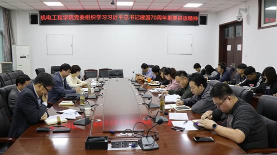 10月9日上午,机电工程公司党委组织全体党委成员、党支部书记在工2-310组织全体支部书记学习习近平总书记在庆祝中华人民共和国成立70周年大会上的重要讲话精神,公司党委书记路金龙、经理倪晋平、副经理王洪喜、党委副书记姚敏茹出席大会,会议由路金龙主持。