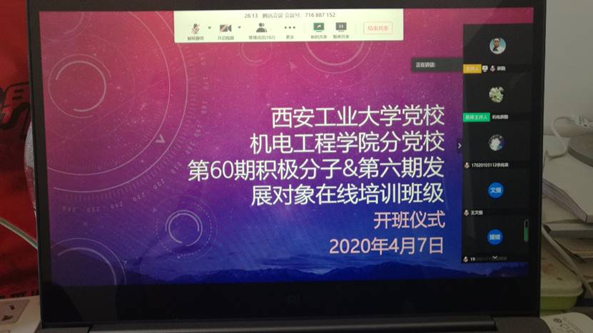 四月七日中午,足球赌注网站分党校依照公司党校要求,利用腾讯会议系统举行了2020上半年足球赌注网站入党积极分子、发展对象培训班网络开班仪式,员工党总支副书记薛鹏主持。
