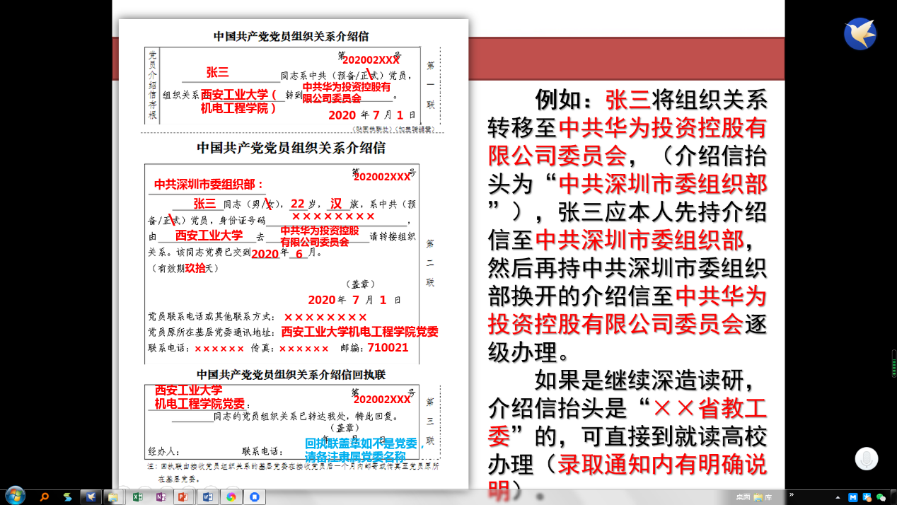 会上薛鹏同志从2020届毕业生党员组织关系转接基本介绍、党员组织关系转至何处、能转接党员组织关系的党组织、转接党员组织关系注意问题、党费及预备党员的注意事项五个角度对本年度毕业生组织关系转移工作进行了动员、讲解和实施部署,对组织关系转移中易发常发问题进行了说明并回答了毕业生党员关于组织关系转移相关的问题。