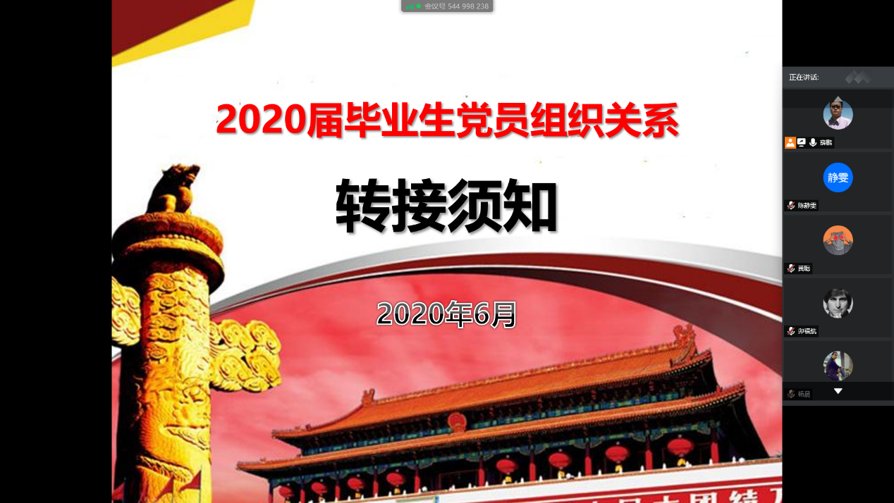 委于2020年5月31日晚使用腾讯会议APP召开了2020届毕业生组织关系转接动员布置会,会议由公司党委组织员薛鹏主持、全体毕业生党员参加。
