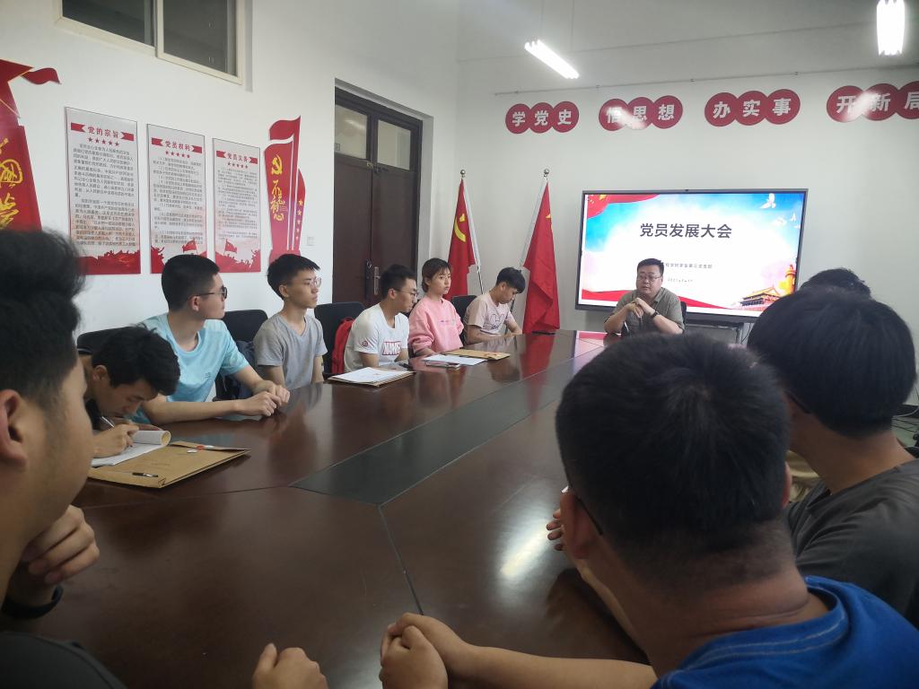 2021年5月17日,足球赌注网站员工第三党支部在工2-405召开支部发展大会,参加此次会议的有足球赌注网站员工第三党支部的支部书记、正式党员和预备党员,应到15人,实到13人,两人请假,其中具有表决权的中共正式党员9人,实到中共正式党员7人,两人请假。会议由刘强同志主持,对白银辉、黄媛媛、黎浪、徐兆龙四名同学发展为预备党员进行讨论和表决。