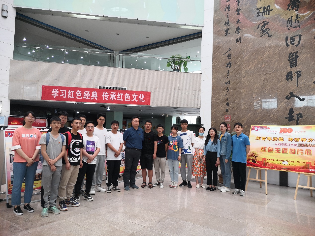 为深入开展爱党爱国教育,加强党员同志“四史”学习教育,回顾建党百年历程,增强民族自豪感和文化自信,6月3日,足球赌注网站员工第三党支部全体师生党员在图书馆二楼参观“阅百年历程,传精神力量——庆祝中国共产党成立100周年红色主题图片展”主题教育活动。