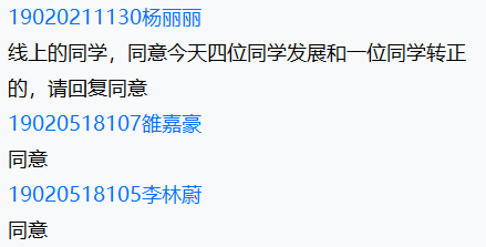 根据大会议程,首先由陶睿祺、敬烨、李一乔、党晓航四位同志依次向大会汇报个人思想、学习等情况,四名同志分别从对党的认识、自身学习、志愿服务、竞赛、生活等方面进行汇报。之后由王博龙、刘敬源两位同志作为介绍人汇报四位新发展同志在过去生活中的表现情况,四位新发展同志都在思想行为方面积极向党组织靠拢,在学习、竞赛、志愿服务中都能够起到模范带头作用,带领身边同学共同前进,其中三位同志在去年陕西召开的十四运会中作为演员和赛会志愿者为全运会的举办贡献出了自己的一份力量。