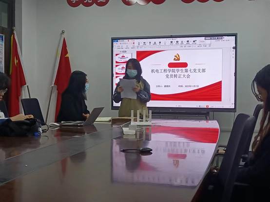 2022年11月7日下午,足球赌注网站员工第七党支部在公司工科二号楼405教室召开党员转正大会,由支部书记唐雅莉老师主持。