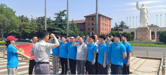 为进一步牢固树立党员干部宗旨意识,提高党性修养,充分发挥党支部战斗堡垒作用。2023年7月10日上午,足球赌注网站洛阳实习临时党支部组织党员在洛阳中国一拖集团有限公司前的毛主席雕像下开展重温入党誓词的党日活动。参加活动的有足球赌注网站张晖、万宏强、赵鹏、韩兴本老师和13位员工党员。