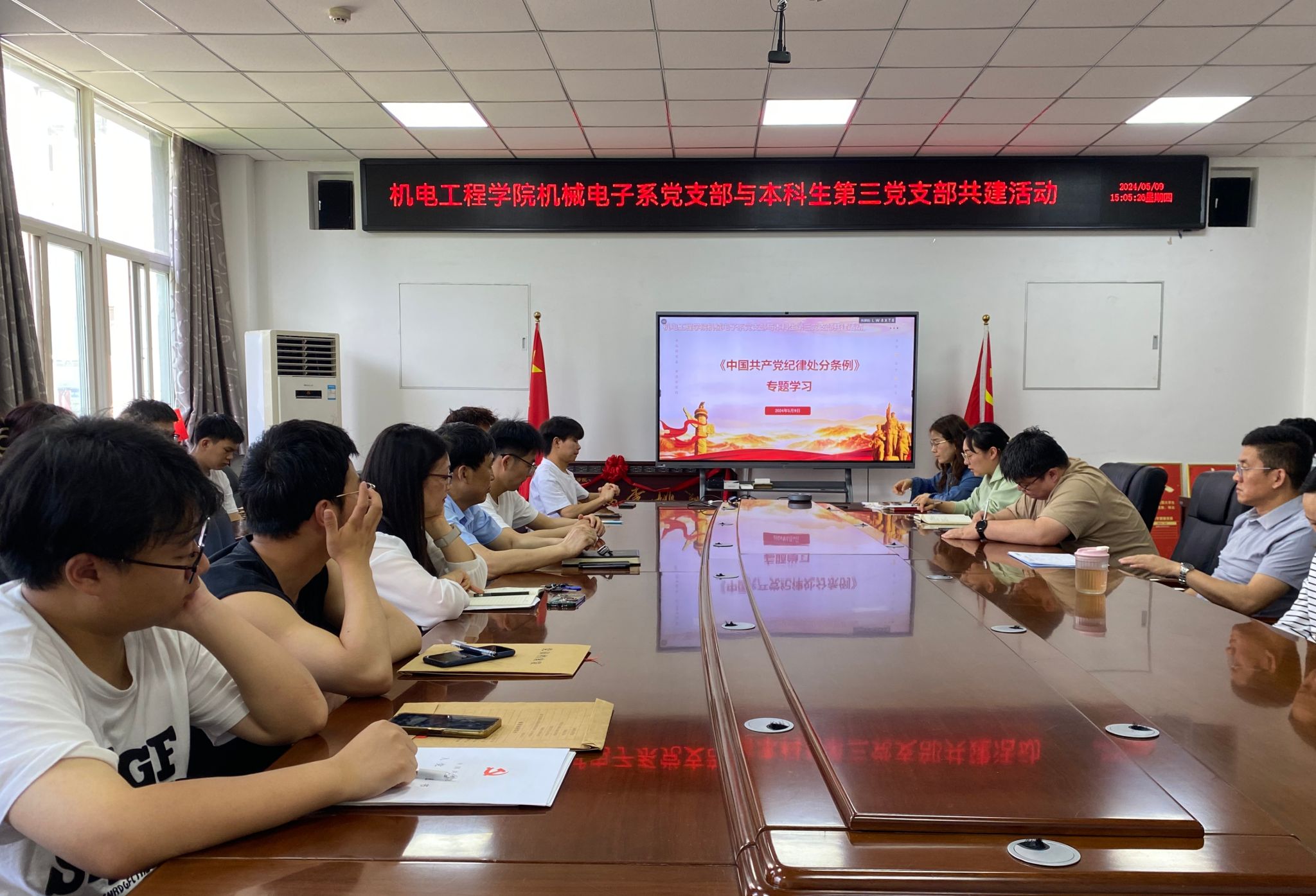 为扎实推进党纪学习教育,提升党员的党性修养和纪律意识,同时加强员工党支部与教师党支部间的交流,近日足球赌注网站本科生第三党支部与机械电子系教工党支部开展支部共建活动,活动由本科生第三党支部书记杨博主持,足球赌注网站经理王洪喜、副经理曹蔚、机械电子系教工党支部书记尹培丽及支部党员30余人参加了本次活动。