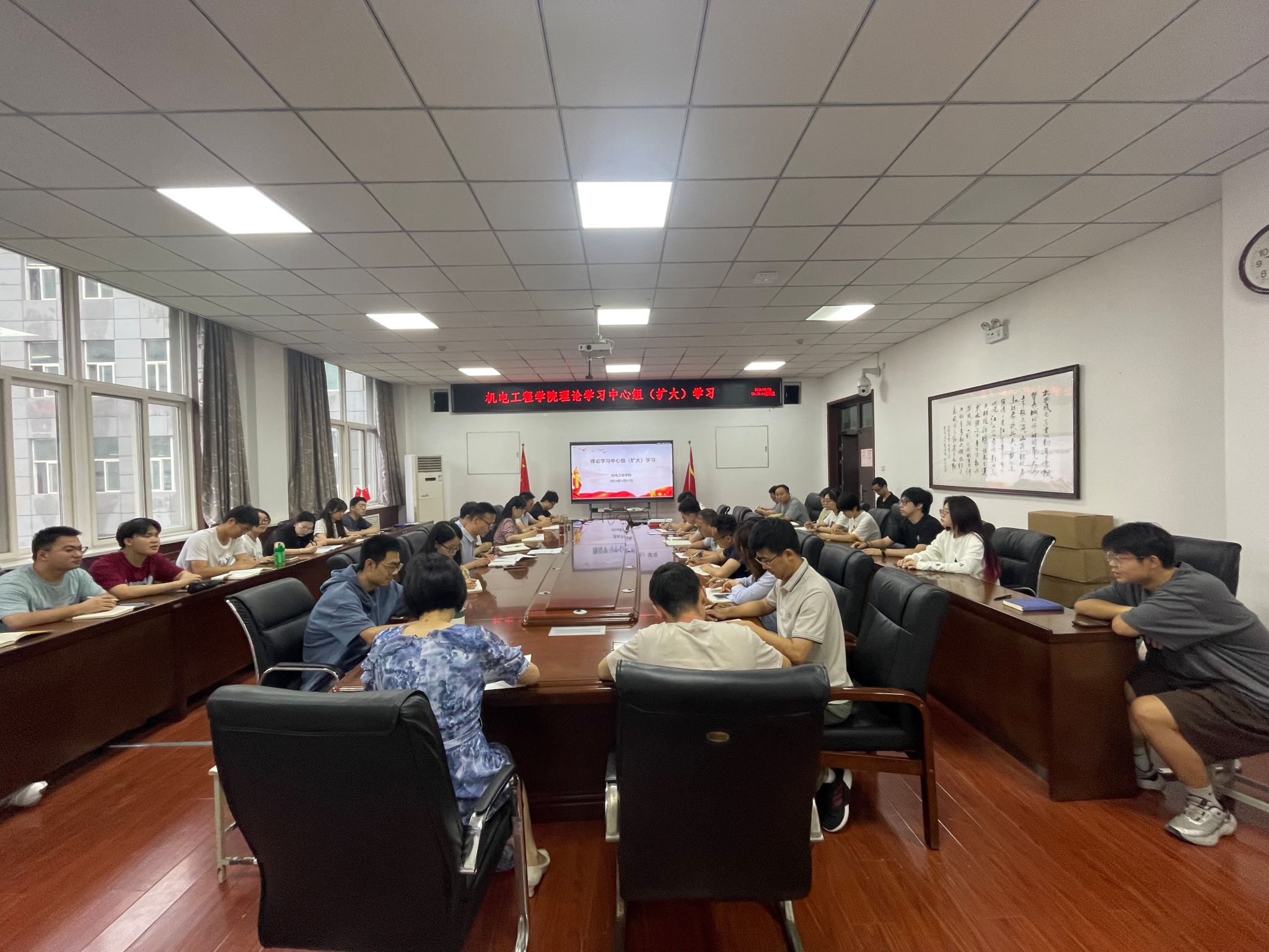 近日,公司召开理论学习中心组(扩大)学习会,会议由公司党委书记程新峰主持,党委委员、理论中心组成员、支部书记参会。