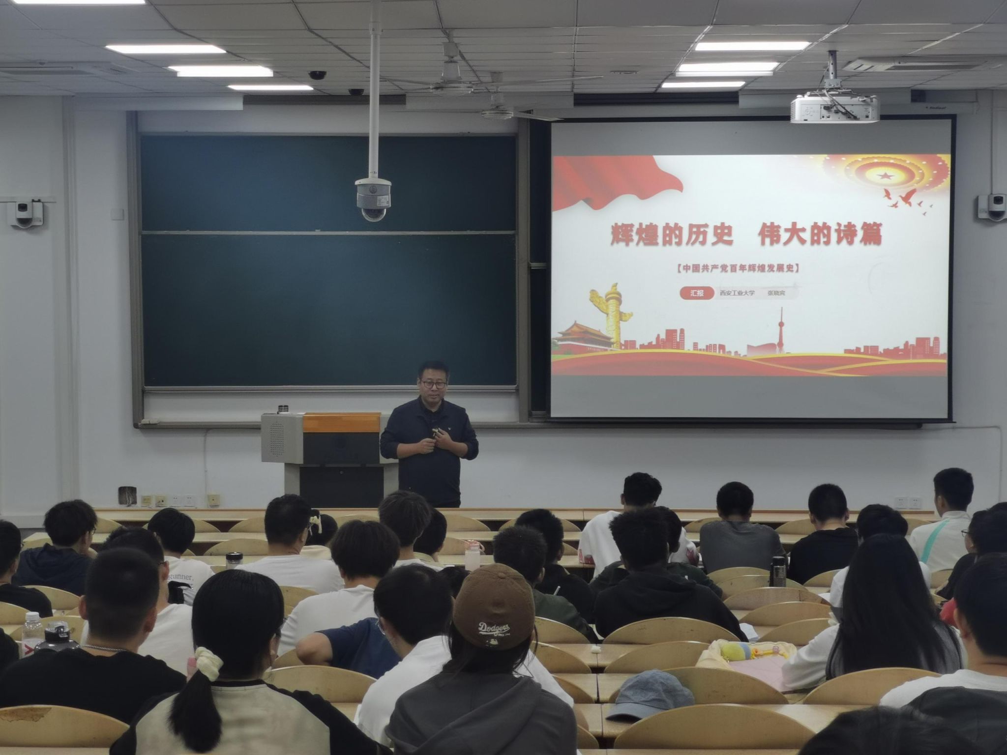 张晓宾将中国共产党的百年辉煌历史划分为六个部分进行讲解,分别是“中国共产党成立的背景与经过、新民主主义的伟大胜利、完成并推进社会主义建设、改革开放和社会主义现代化建设、开创中国特色社会主义新时代以及中国共产党奋斗百年的历史意义”。在讲解过程中,他以“党面临的主要任务”为切入点,深入浅出的讲解,引领大家深入的思考和学习。