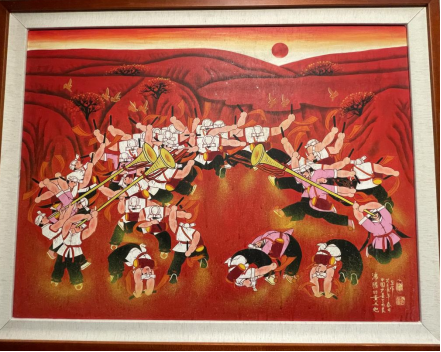 步入展览馆,在讲解员的带领下仿佛穿越了时空隧道,回到了那个充满生机与活力的时代。农民画家一手拿锄头,一手拿画笔,以土地为纸,以生活为墨。画天、画地、画自己;画山、画水、画乡情。用张扬饱满的色彩,描绘热气腾腾的时代生活,一笔一画,都见证着时代的变迁。一幅幅画作以农民生活与农村不同发展阶段的历史进程为题材,以健康的色彩、朴实的线条、生动的形象,展现了农民对美好生活的向往和追求。