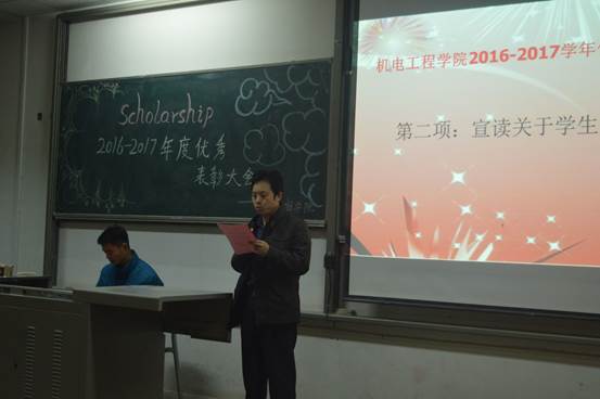 2017年12月14日晚6点,公司在教1-201成功举办了2016-2017学年优秀表彰大会。出席本次大会的嘉宾有公司党委书记赵玉厚、公司党委委员张晖、院员工党总支副书记薛鹏、院团委书记唐雅莉及公司各年级辅导员老师。