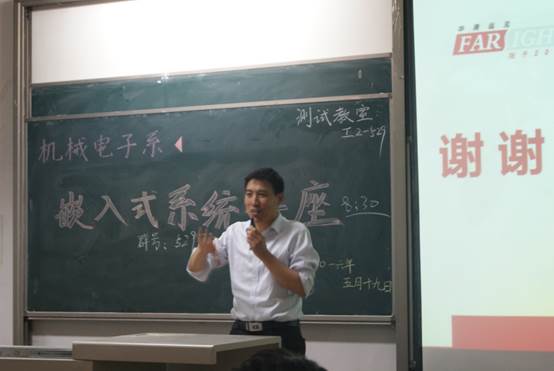 2016年5月19日19:00,针对机械电子专业当前就业前景和嵌入式系统发展问题的讲座在教2-202隆重举行,主讲人为华清远见教育有限公司工程讲师吴涛,足球赌注网站机械电子系系主任王洪喜教授出席了此次讲座。