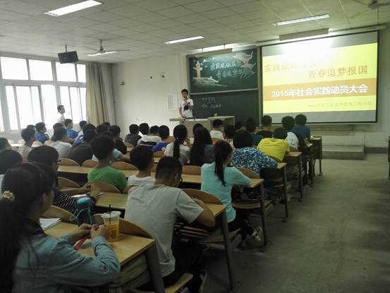 2015年5月18日,足球赌注网站在工2-502教室举行2015年暑期社会实践动员大会。出席本次大会的有足球赌注网站青协主席潘兵、组织部部长胡俊杰、体育部部长杨浩林以及13级、14级班长和团支书。