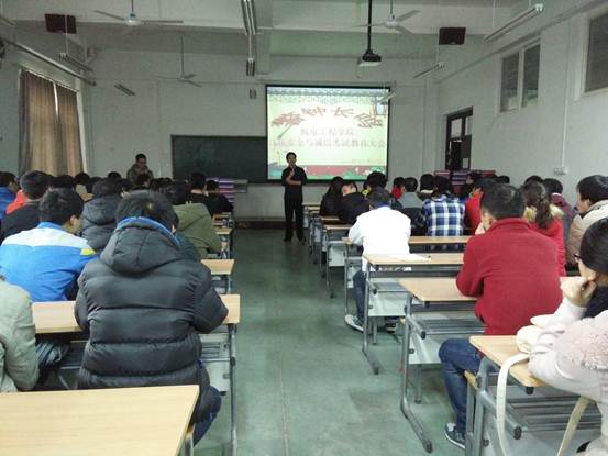 会议伊始,张晖老师对老员工的人身安全作了特别强调,提醒同学们临近放假,要注意自己的财产安全和人身安全,离开宿舍时关好门窗,切断所有电源,顺利回家。接着,张老师通过发生在身边的实际事例和上海外滩踩踏事件,进一步向同学们阐述了安全的重要性,嘱咐同学们要树立安全防范意识。最后,黄彦军老师要求同学们诚信考试,叮嘱大家在接下来的几天时间里认真复习,并对违纪考试的相关处分作了说明。