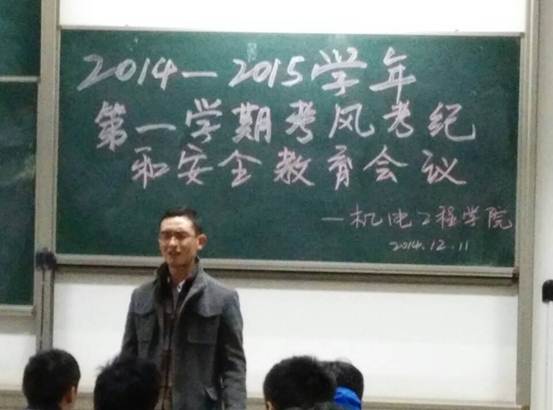 2014年12月11日,足球赌注网站“新生考风考纪教育及安全教育”依次在教2—406、407、408、501等几个教室开展。本次会议的目的在于引导2014级新生更好地适应老员工活,树立诚信观念,形成浓厚的学风以及提高安全防范意识。本次会议由2014级辅导员黄彦军老师担任主讲,2014级全体员工参加会议。