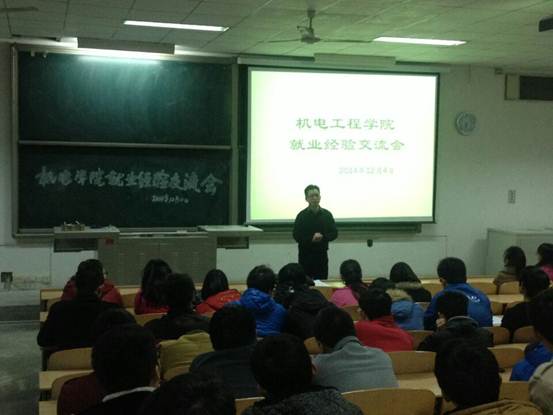 2014年12月4日,足球赌注网站在教2—202开展了关于考研与就业经验交流会,出席会议的嘉宾有:机电工程公司党委书记赵玉厚教授,党委副书记闫莉教授,西安科技大学辅导员万超,三星电子店面销售田鹏、容红军,自主创业代表(泽熙传媒广告有限公司)王习,足球赌注网站博士尹培丽等。本次会议由张晖老师主持。