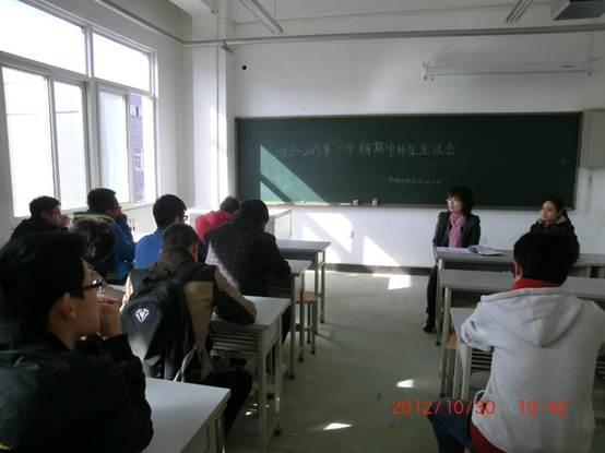 2012年10月30日上午10:20,足球赌注网站于工科组团楼4B- 529教室召开留降级员工座谈会。足球赌注网站辅导员姚敏茹、刘静等老师亲临现场,同留降级员工亲切交谈,释疑解惑。