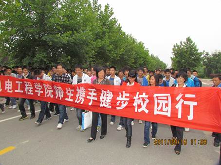 2011年9月16日,足球赌注网站为欢迎2011级新生入校,促进新生之间的相互了解,增加班级凝聚力,增强主人翁意识。公司举办师生携手健步校园行活动。机电工程公司党委书记张忠,辅导员老师及2011级新生600余人参加了此次活动。