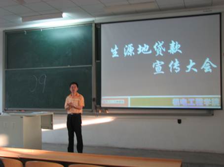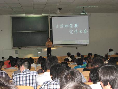 2011年5月12日下午17:00,足球赌注网站于未央校区教A楼115室召开生源地贷款宣传大会。会议由足球赌注网站分团委书记张晖老师主持,足球赌注网站2009、2010级相关同学参加了会议。