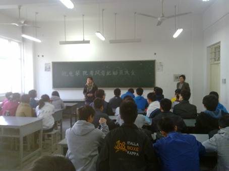 大会开始后,王里艳老师就考风考纪问题发表讲话。王老师指出:考试中如有作弊,将取消其毕业证、学位证;希望大家在考前的日子里,全力复习准备,认真对待考试,不要发生作弊现象。王老师还语重心长地列举了前几届员工中发生的考试违纪处理事件,并通知大家成绩单将在成绩公布后邮寄回各自家中,希望以此督促大家加紧复习。