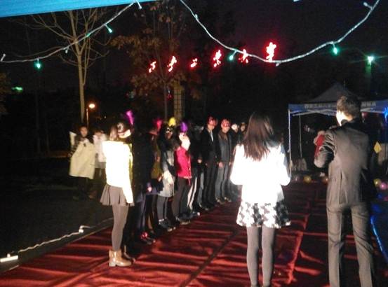 晚会开始之前,工作人员有条不紊的将各项准备工作处理完毕。随后,伴着夜幕的降临,越来越多的同学都集聚于此等待着舞会的开始。本次活动的开场由一段舞蹈引出,现场的气氛一下子就被带动起来。大家都戴着自己喜欢的面具,选出自己心仪的搭档。接下来,各种现场活动和游戏接踵而来,同学们的情绪也由最开始的害羞变得活泼起来,唱一首歌曲、跳一支舞蹈、秀一段魔术,大家都乐此不疲的沉浸在欢乐的海洋里。最后,一首歌曲<不再见>为本次活动画上了圆满的句号。