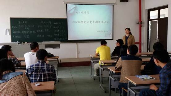 2014年10月10日上午10:30,足球赌注网站研究生党支部在工2-502召开了2014级研究生支部选举大会。出席本次大会的有研究生秘书宁雪老师和14级全体研究生党员。
