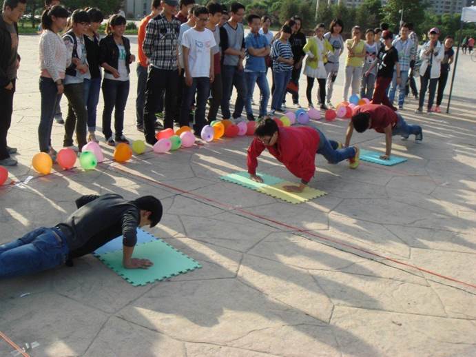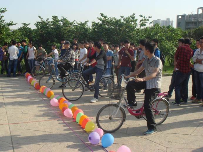 初赛中,以寝室为单位的选手们齐心协力,奋勇争先。“自行车慢骑,选手们准备待发!” 、“两位选手齐心协力运乒乓球” 、“团体赛环节第一棒男生们顶着烈阳做俯卧撑,第二棒的吹气球依旧是男生们的竞争环节,当然不乏勇敢地女生” 、“最后一棒由女生跳绳来最终决一胜负”…… 通过各种环节,使宿舍的凝聚力得到了很大的提升,大家的感情也在游戏的欢笑声中无形的得到提升。