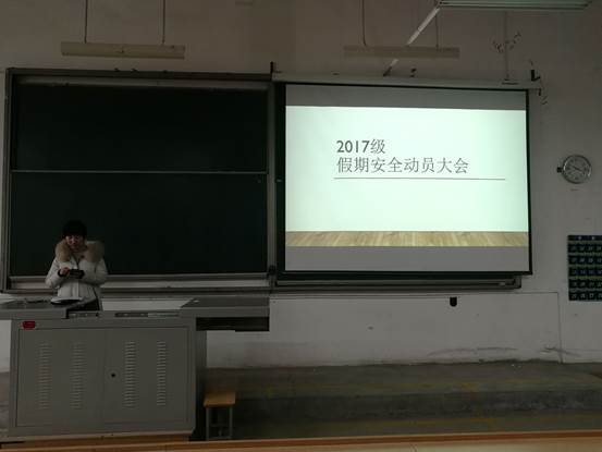 2019年1月10日10时,2017级假期安全暨考风考纪动员大会在教1-205/217召开,2017级辅导员薛鹏、唐雅莉老师主持了本次动员大会。