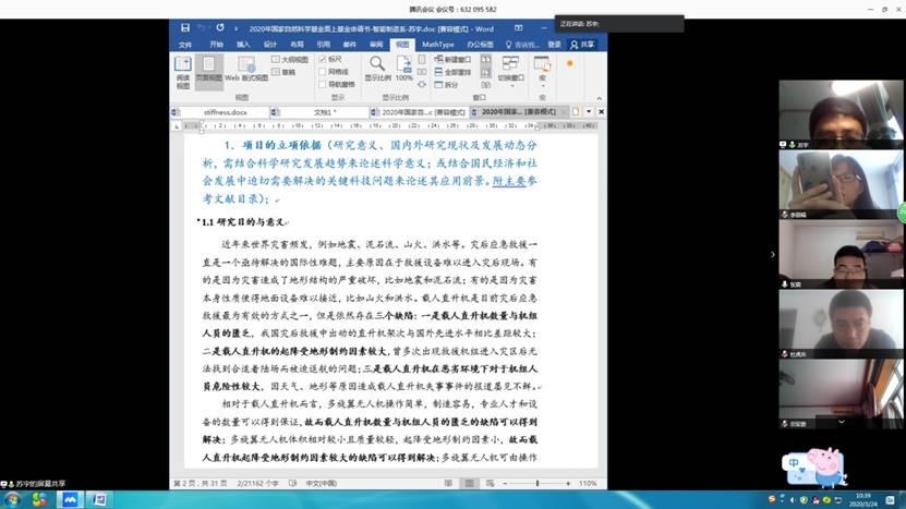 3月24日上午十点,足球赌注网站第五次国基金申报工作推进视频会议如期召开。本次会议由足球赌注网站智能制造与工业工程系主任田军委教授主持,特邀杜虎兵副教授、唐霖副教授两位在国基金申报方面经验丰富的老师作为指导老师参与了本次视频研讨。公司部分基金申报老师参加了会议,会议持续了两个半小时。