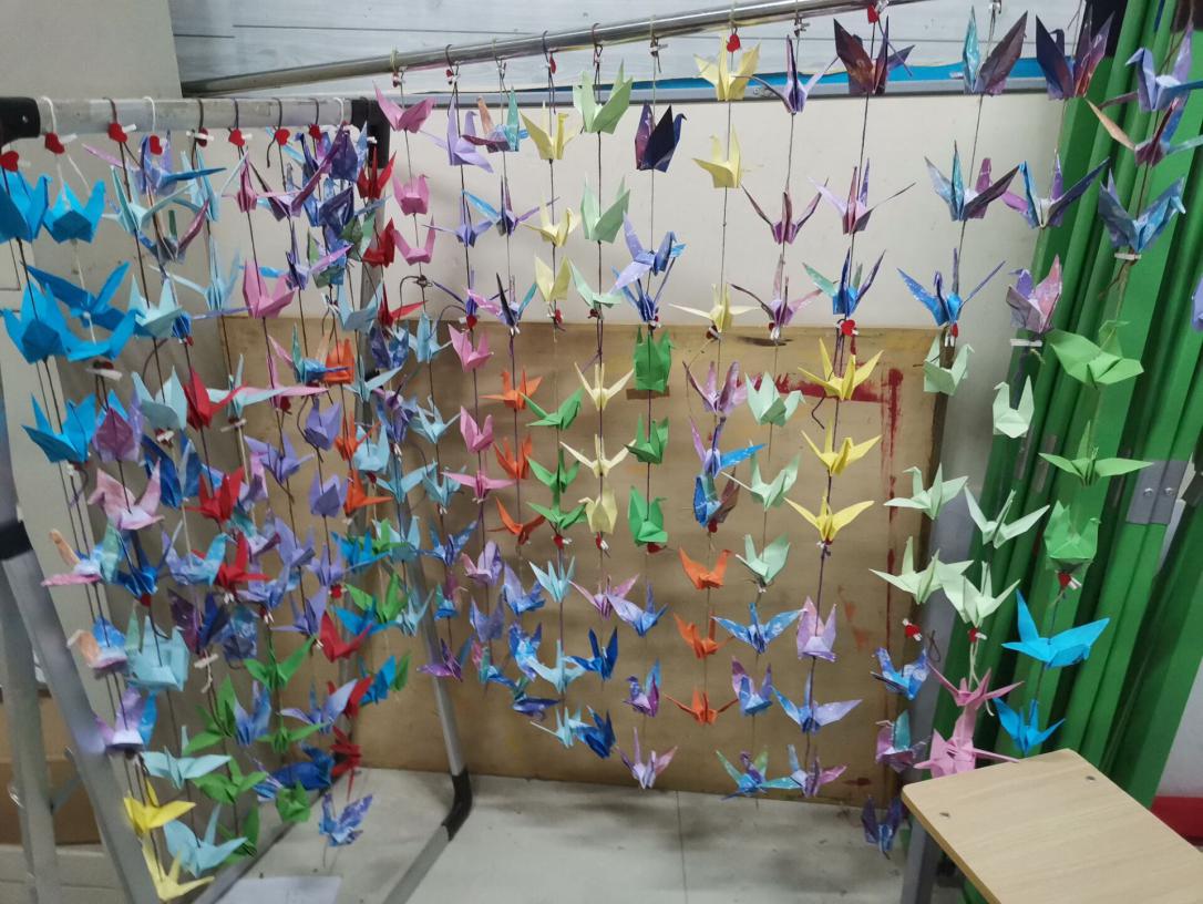 (团学组织成员亲手折出的千纸鹤)