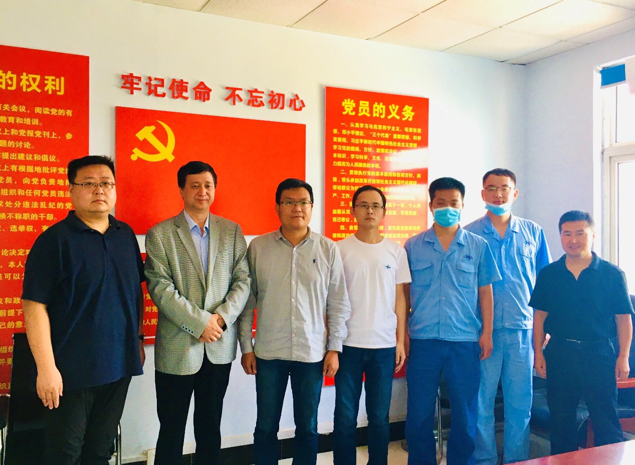 国网许继集团许继电气股份有限公司柔性输电分公司公司2015届研究生员工刘官2010届本科生员工屈春雷,国网平高集团智能电器有限公司2016届研究生员工赵海洋、2017届研究生员工付江浩对路金龙一行的到来表示热烈欢迎。