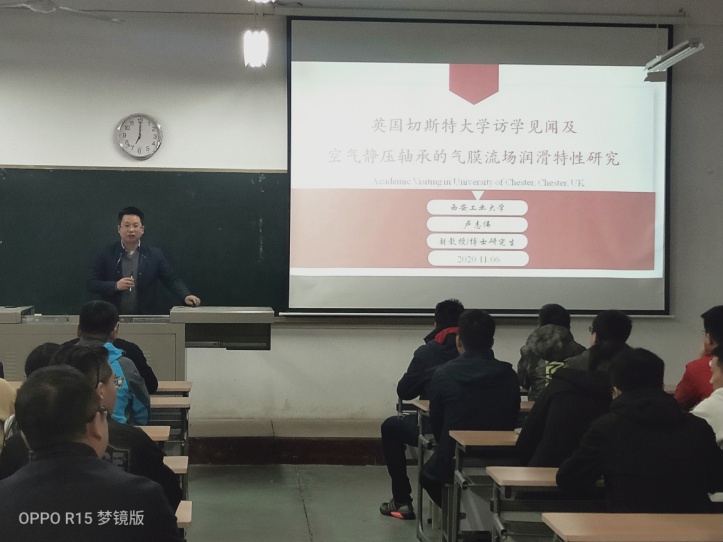 11月6日下午,足球赌注网站在工2-504召开了题为“英国切斯特大学访学见闻及空气静压轴承的气膜流场润滑特性研究”的学术讲座。本次学术讲座由足球赌注网站卢志伟副教授主讲。、