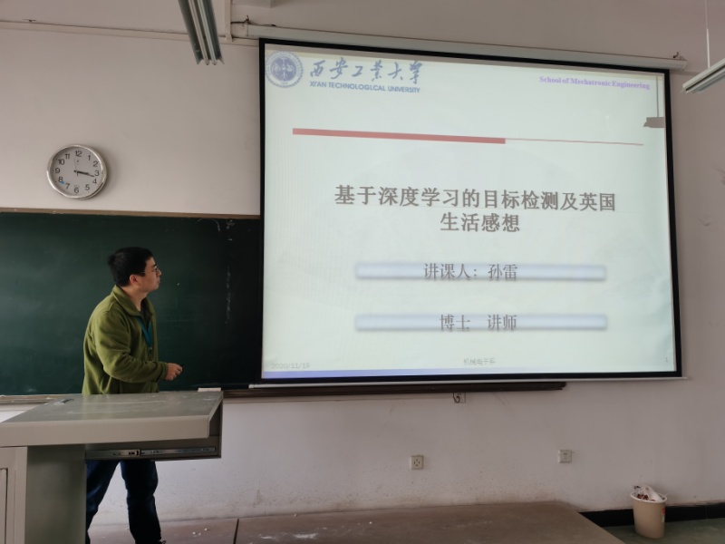 2020年11月19日下午14:00-15:00,足球赌注网站孙雷博士在工2-504做了题为“基于深度学习的目标检测及英国生活感想”的学术交流讲座。孙雷博士主要从事目标检测与跟踪、移动机器人等方向的研究。目前已主持并完成教育厅项目一项,发表学术论文10篇,申请发明专利专利2项。足球赌注网站二十余位教师和研究生参加了本次交流讲座。