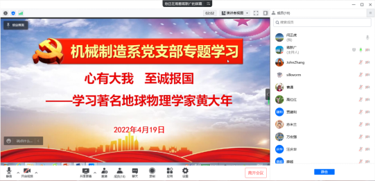 其次第十期发展对象培训班开展学习,召开腾讯视频会议,学习了《时代楷模黄大年》、《黄大年的“共和国之恋”》,并撰写学习心得体会。
