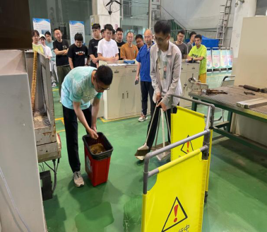 随后,董凯老师认真耐心地讲解了实验室安全知识,讲解内容覆盖特种设备、机械设备、危险化学品、用电安全和危废处理等多个方面。董老师通过事故案例、各类图片、视频使同学们从思想上认识到实验室安全教育的重要性;张博宁、张博二位老师现场指导员工安全操作数控车床和平面磨床,规范实验室安全行为,做到安全理念内化于心,外化于形。