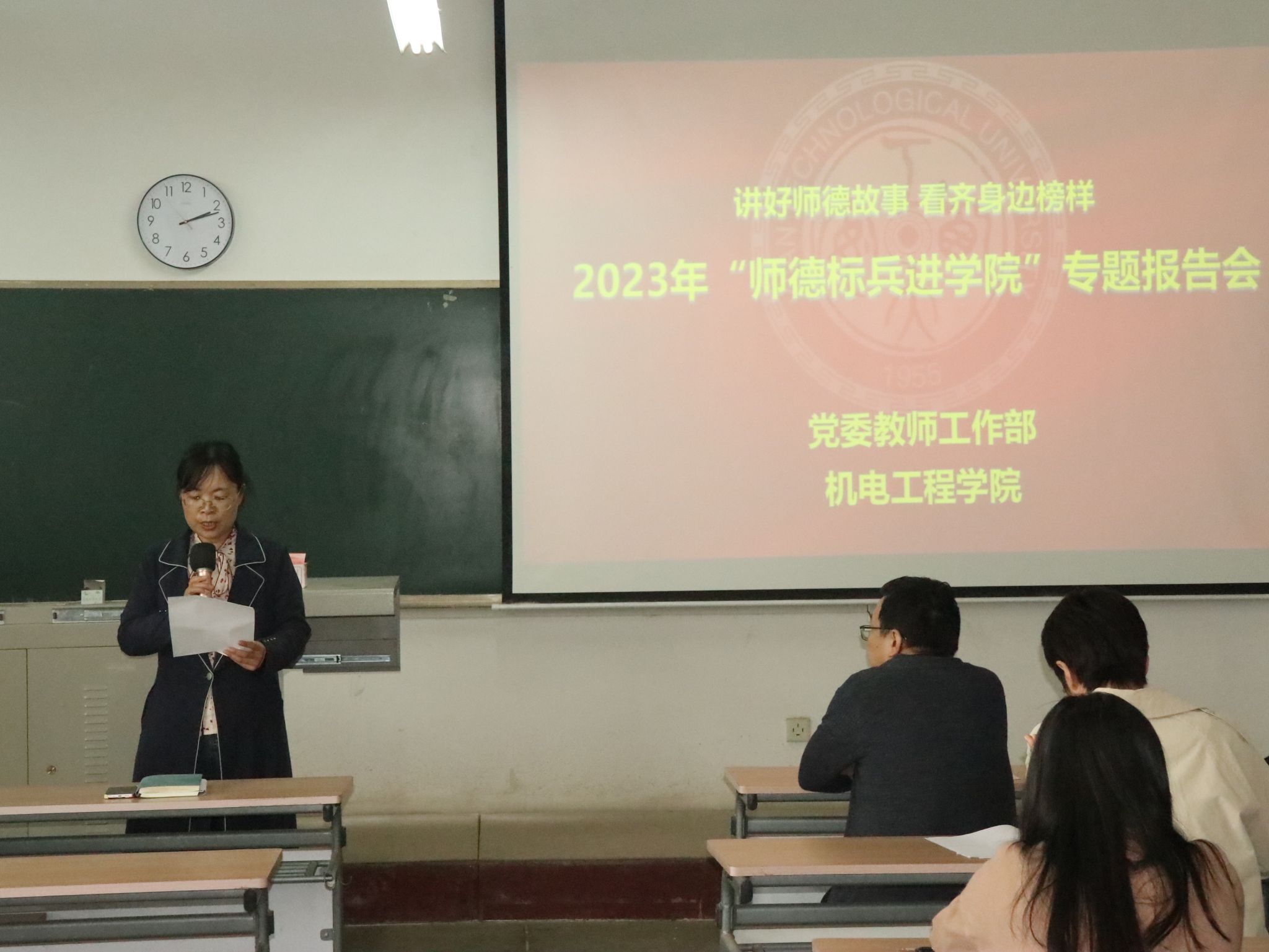 为进一步提升教师的师德师风,鼓励教师注重自身修养,培养良好的职业素养。10月13日,足球赌注网站于工2-504教室召开2023年“师德标兵进公司”专题报告会。机电工程公司党委副书记姚敏茹主持了会议,特别邀请2022年校级师德标兵赵东副教授做了题为“教育法律法规与师德师风建设”的专题报告,公司全体教职工参加了此次会议。