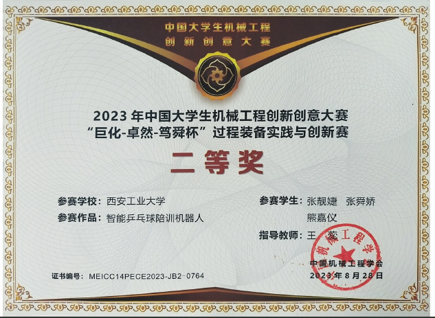 本届赛事共吸引来自浙江大学、西安交通大学、天津大学等全国127所高校的1282支队伍报名参赛,经过校赛、区域赛评审,遴选出130项(其中本科生作品88项、研究生作品42项)优秀作品入围全国总决赛。通过来自全国各地50余位资深专家组成了评审专家组对参赛作品进行评审,公司员工张靓婕、张舜娇等制作的“智能乒乓球培训机器人”等个项目荣获全国二等奖2项,全国三等奖1项。