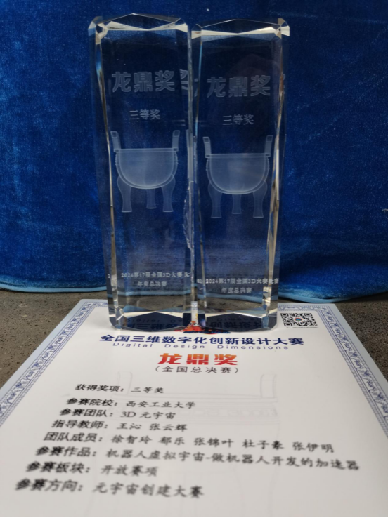公司参加了数字工业设计、数字文化设计、数字人居设计、元宇宙创建大赛等参赛方向、元宇宙3D/XRAI老员工创新实践等大赛方向的角逐,在省赛中获41项省级奖项,其中8支参赛队伍成功入围国赛。张传运、千学明老师指导的《以小青菜为主的叶菜收割机》、万宏强老师指导的《小米绿豆间种一体机》获二等奖;王沁、肖强、卢志伟、范庆明、闫正虎等老师指导的《机器人虚拟宇宙-做机器人开发的加速器》等6个项目获三等奖。公司获优秀组织奖。