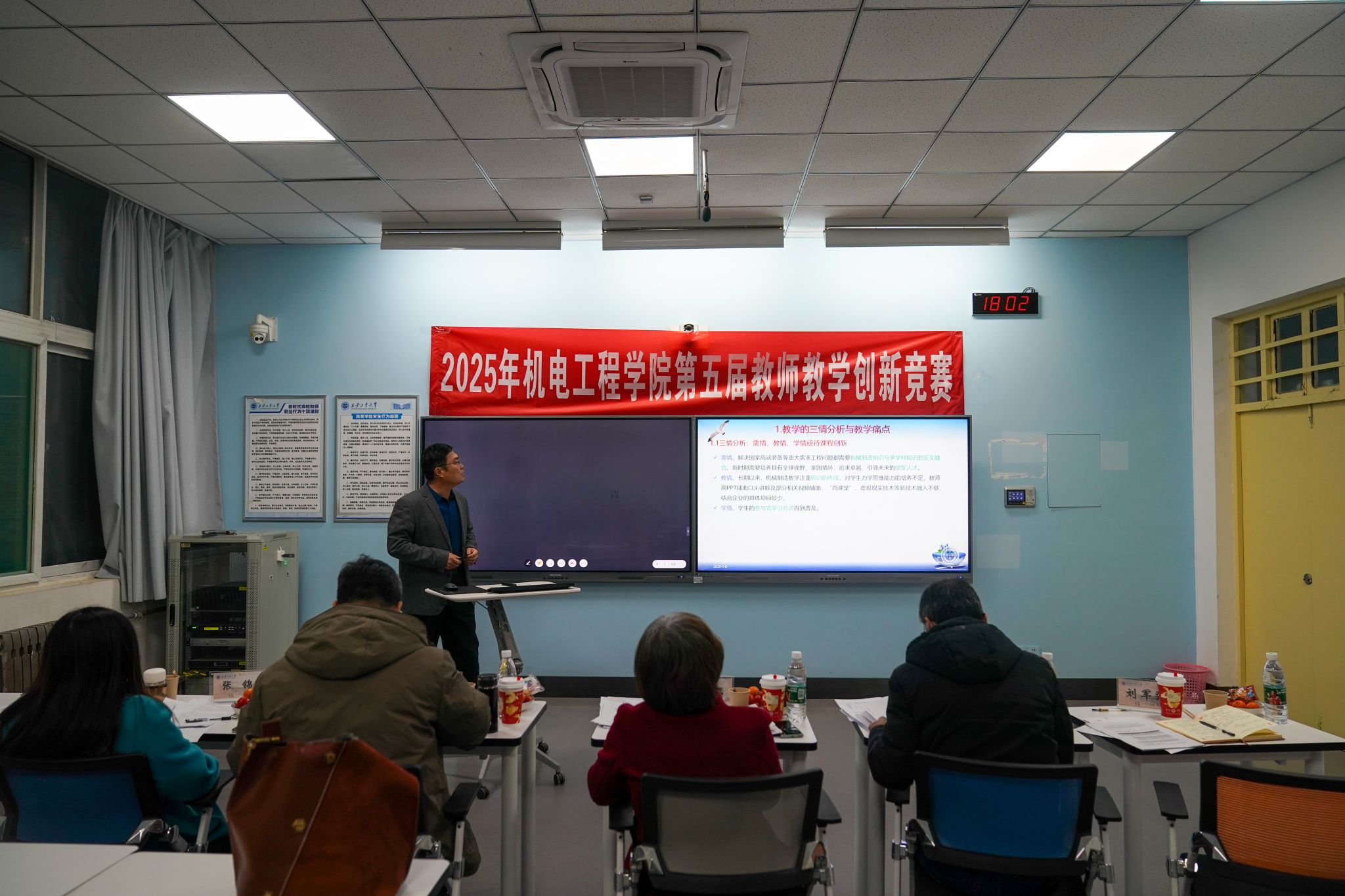 参赛教师通过引人入胜的教学设计、从容不迫的讲授方式以及条理清晰的课堂展示赢得评审专家和观摩教师的好评。整场比赛历时四余小时,评审专家对照比赛评分规则从现场教学展示、教学创新成果、教学设计创新、课程思政创新、产教融合创新等多个维度对每位参赛选手评分。