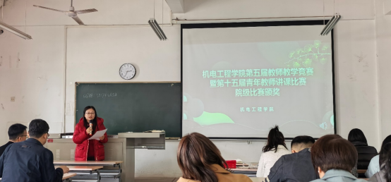 2月28日下午,足球赌注网站在工2-504举行第五届教师教学竞赛暨第十五届青年教师讲课比赛院赛颁奖仪式,对在此次比赛中表现卓越的教师进行表彰。此次颁奖仪式由副经理曹蔚主持,全体教师共同出席。