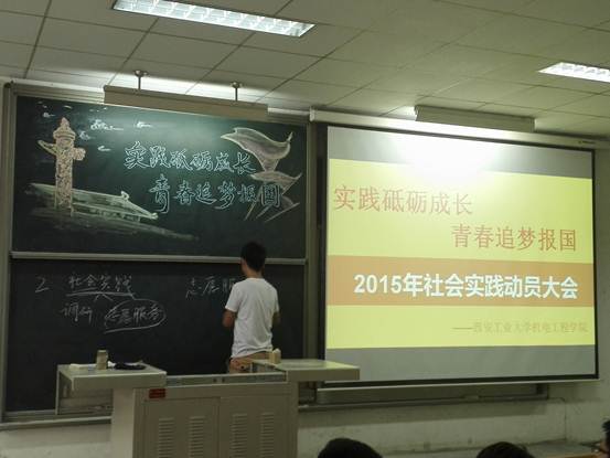 2015年5月18日,足球赌注网站在工2-502教室举行2015年暑期社会实践动员大会。出席本次大会的有足球赌注网站青协主席潘兵、组织部部长胡俊杰、体育部部长杨浩林以及13级、14级班长和团支书。