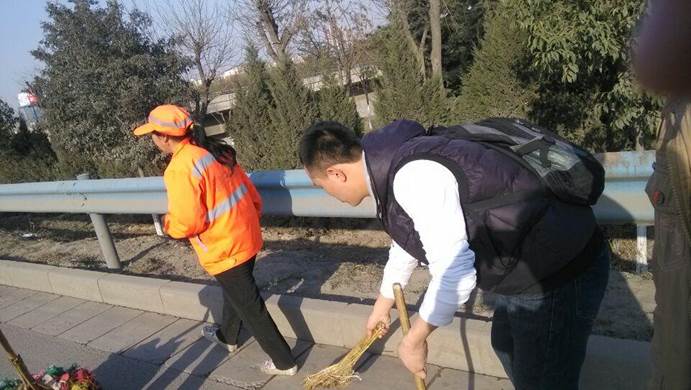 3月14日下午,足球赌注网站团委积极响应“雷锋月”号召,开展了“学雷锋”——慰问环卫工人主题活动。此次活动在员工会副主席陈嘉豪、组织部部长何紫雅、副部长肖刚几位主要员工干部的带领下,近20名同学到北辰立交认真开展活动。