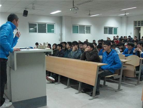 2012年11月20日晚7:00,足球赌注网站两位“十佳老员工”朱英杰和李月月,在教B207教室为低年级同学做了一场精彩的成长成才报告会。