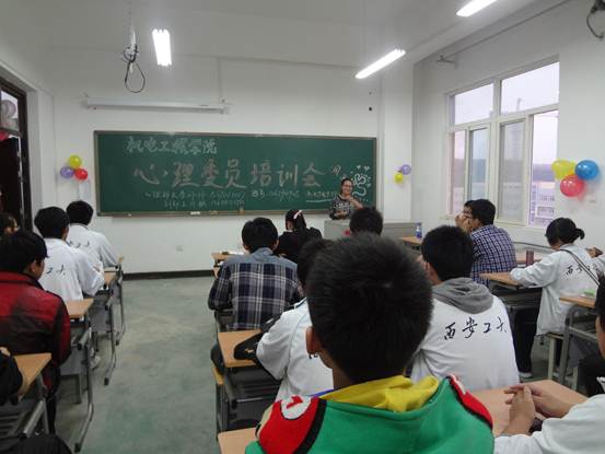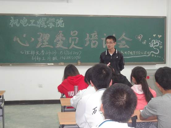 2012年10月11日下午17:30,足球赌注网站心理委员培训会在4B-501隆重召开。会议是由院员工会心理部发起,11、12级各班的心理委员及心理部的干事50余人参加了此次培训会,会议由心理部部长李帅帅主持。