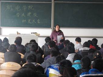 2011年3月1日至2日,足球赌注网站于未央校区教B楼501、506室分专业召开学风建设动员大会。机电工程公司党委书记张忠,10级辅导员张晖、杨翠萍、王里艳,以及10级全体员工参加了本次会议。会议由足球赌注网站分团委书记张晖主持。