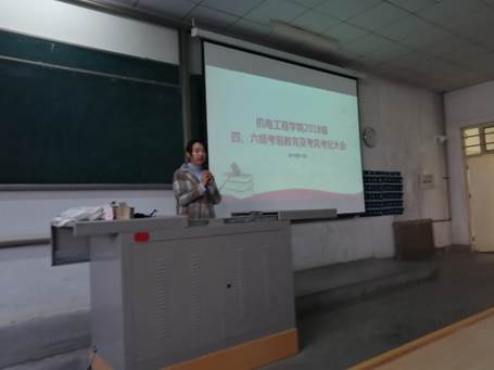 大会伊始,许老师强调了四、六级考试对当代老员工的重要性,提高了同学们对四、六级的重视程度。并带领大家学习了《CET考生守则》,详细介绍了关于CET考试的各项要求,也表明了在CET考试中作弊的严重性。英语四、六级考试为国家级考试,在国家级考试中作弊已经触犯了刑法。许老师以一些四六级作弊被抓员工的案例向大家展示在国家级考试中作弊的严重后果,引起了同学们的高度重视。接着,许老师指出了四、六级是否通过影响了同学们在毕业后找工作的难易程度,提高了同学们对于英语的重视程度,也为同学们绷紧了四、六级的纪律之弦。会议最后,许老师为大家四六级考试做出建议。希望同学们能够在考前放松心情,认真准备考试用具,在考场上沉着应考,发挥出自己的真实水平,取得优异的成绩。