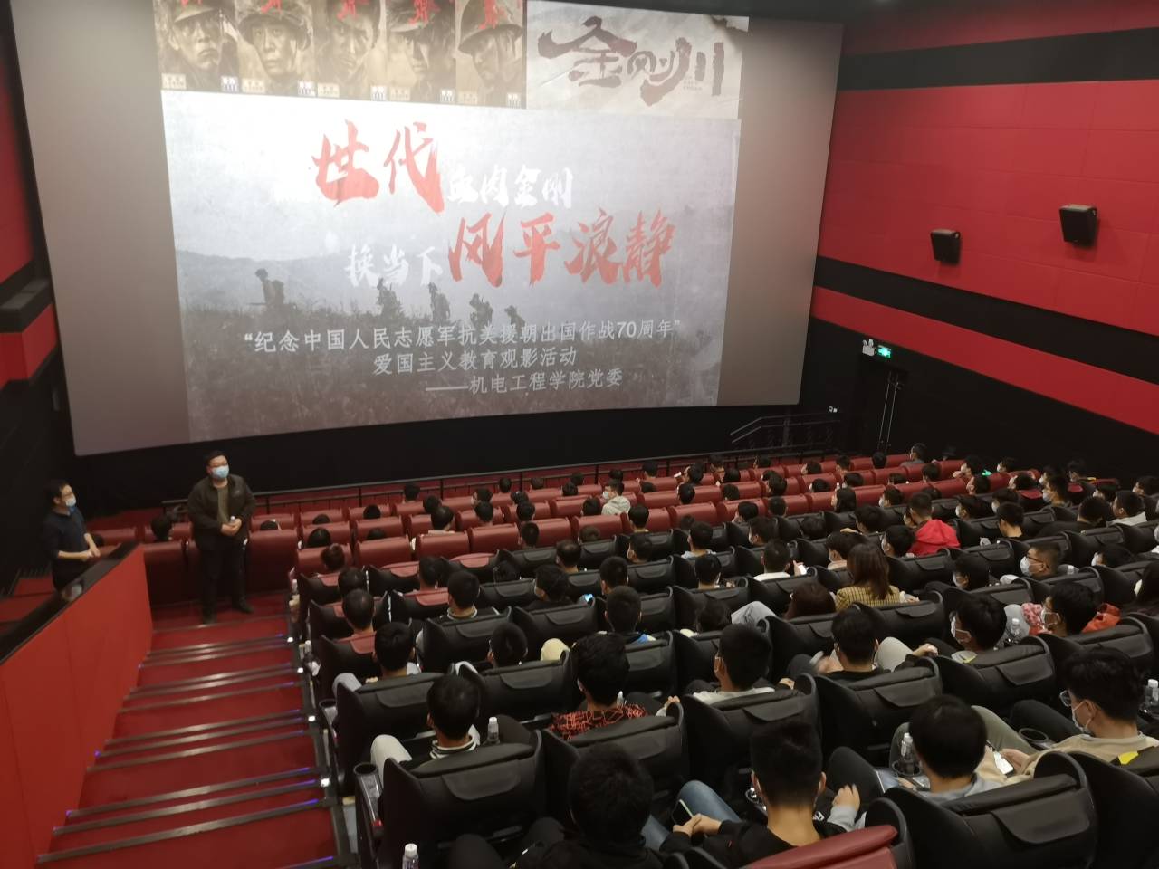 2020年10月29日晚,机电工程公司党委组织困难生群体及员工干部骨干200余人开展了以“纪念中国人民志愿军抗美援朝出国作战70周年”为主题的爱国主义教育活动,公司党委委员张晖、辅导员薛鹏、刘昊雨、高珊等人参加,观看电影《金刚川》,重温那段艰苦奋斗不惧强敌的岁月,学习志愿军战士保家卫国的英勇事迹。