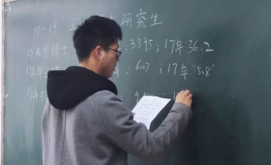 随后,博士研究生楚超勤与大家讲述了自己的求学经历,并就考研公司选择、公共课及专业课复习、复试准备等内容分享了自己的经验。并通过分析、对比2017至2019年博士生招生数目、在读生数目和毕业数目,让同学们确切而真实地了解了攻读博士研究生的必要性。