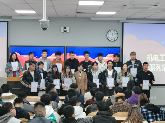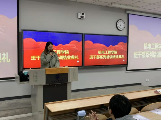 为深入学习贯彻习近平总书记重要讲话精神,加强公司组织建设,进一步提升公司班干部政治素养和工作能力,经公司领导的周密部署,辅导员的精心策划和筹备,公司开展了为期两个月的2020级班干部系列培训活动。经过六次的培训,2021年12月5日,班干部系列培训结业典礼于教2-210顺利举行。出席结业典礼的嘉宾有机电工程公司党委副书记姚敏茹老师,2020级辅导员唐雅莉、马芳荣老师。2020级全体班干部参加了此次结业典礼。